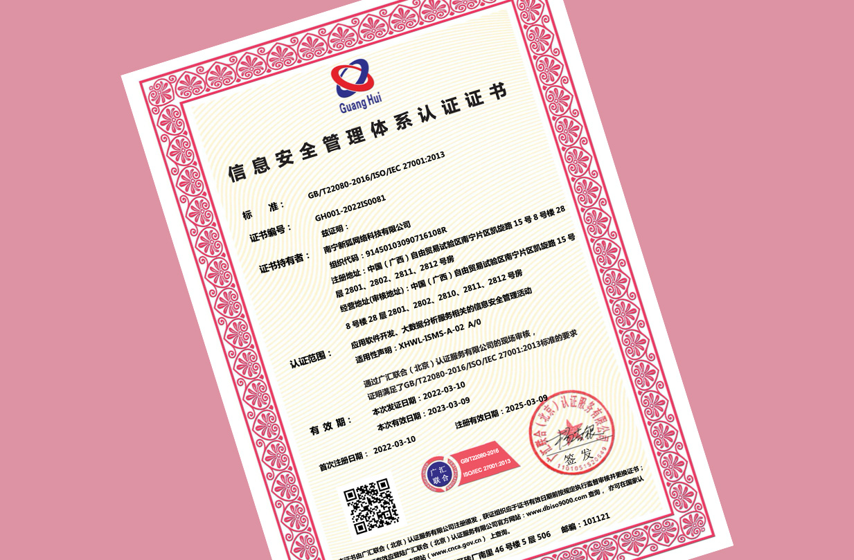 信息安全管理體系認證證書
